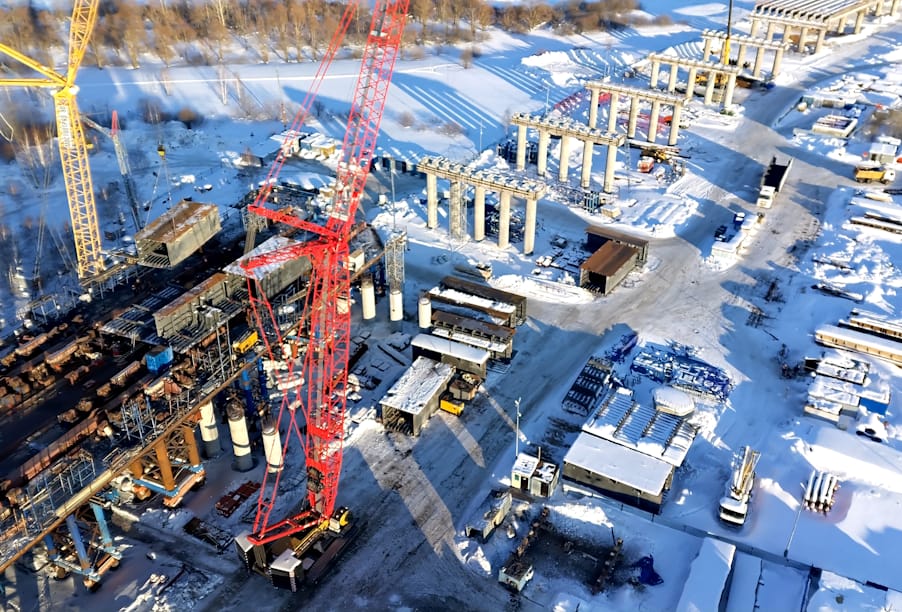 На участке успешно завершен очередной этап надвижки металлического пролетного строения и на 65% выполнено строительство русловых опор. Мост, соединяющий берега Камы, будет стоять на 22 опорах, из которых 15 опор – эстакадной части и 7 ‒ русловой. Самый трудоемкий процесс при строительстве искусственного сооружения – возвести опоры в русле реки в условиях обеспечения непрерывной судоходной навигации.  К строительству русловых опор специалисты приступили в октябре 2022 года. В данный момент в работе все семь опор. На 95 % выполнены работы по возведению седьмой, шестой и пятой из них. Осталось произвести их окраску.