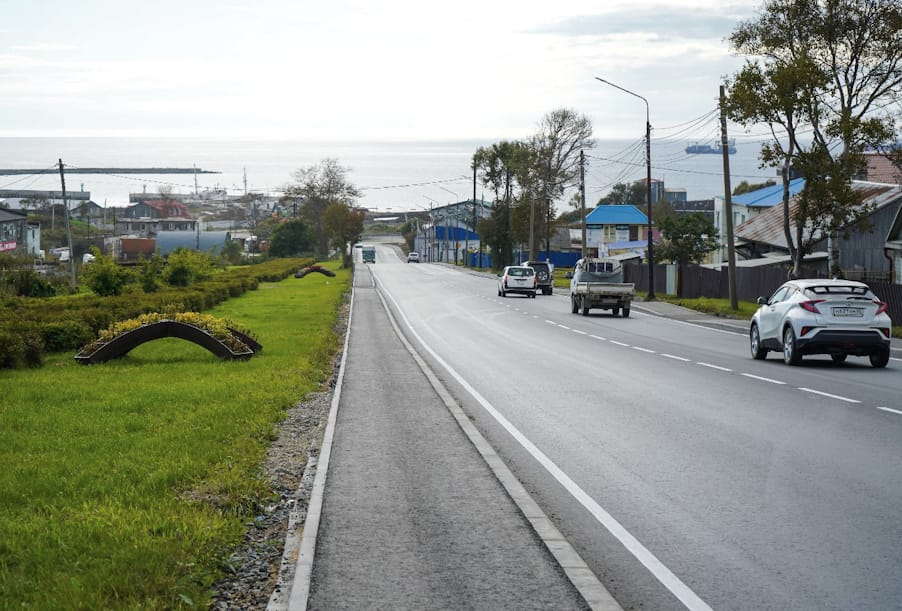 На въезде в город Корсаков по национальному проекту «Безопасные качественные дороги» привели в нормативное состояние участки улиц Южно-Сахалинской и Вокзальной. Протяженность объекта составляет около 1 км.